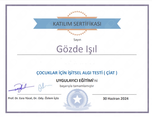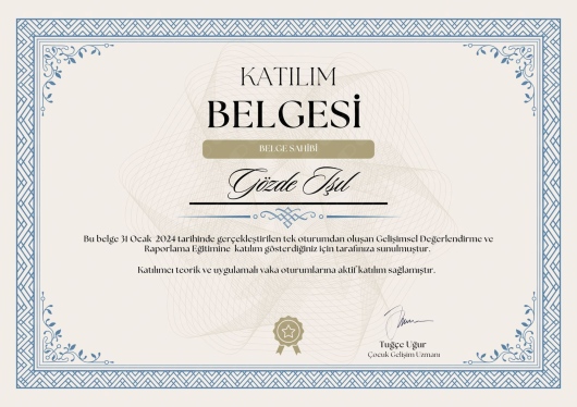 Herkese merhaba öncelikle şunu söylemek isterim ki sizlerle tanışmak için sabırsızlanıyorum. Mesleğine aşık iletişim becerisi kuvvetli en önemlisi de çocuklarla enerjisi çok iyi tutan bir terapistim. 2015 yılından başlayan eğitim ve öğrenme sürecimi halen aktif olarak sürdürmekteyim. Çocuk ve aileyi bir bütün olarak görüyor kapsayıcı bir süreç yürütüyorum. Özel eğitim merkezi haricinde yüz yüze ve online eğitimler yürütüyorum. Aile danışmanlığı ve bebek gelişim takibi yapmaktayım.
